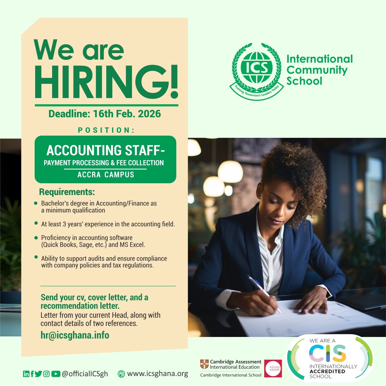 We are seeking a committed and detail-oriented Accounting professional to join our Accounts and Finance team at our Accra Campus. If you are dependable, meticulous, and passionate about financial accuracy and compliance, we would be pleased to hear from you.