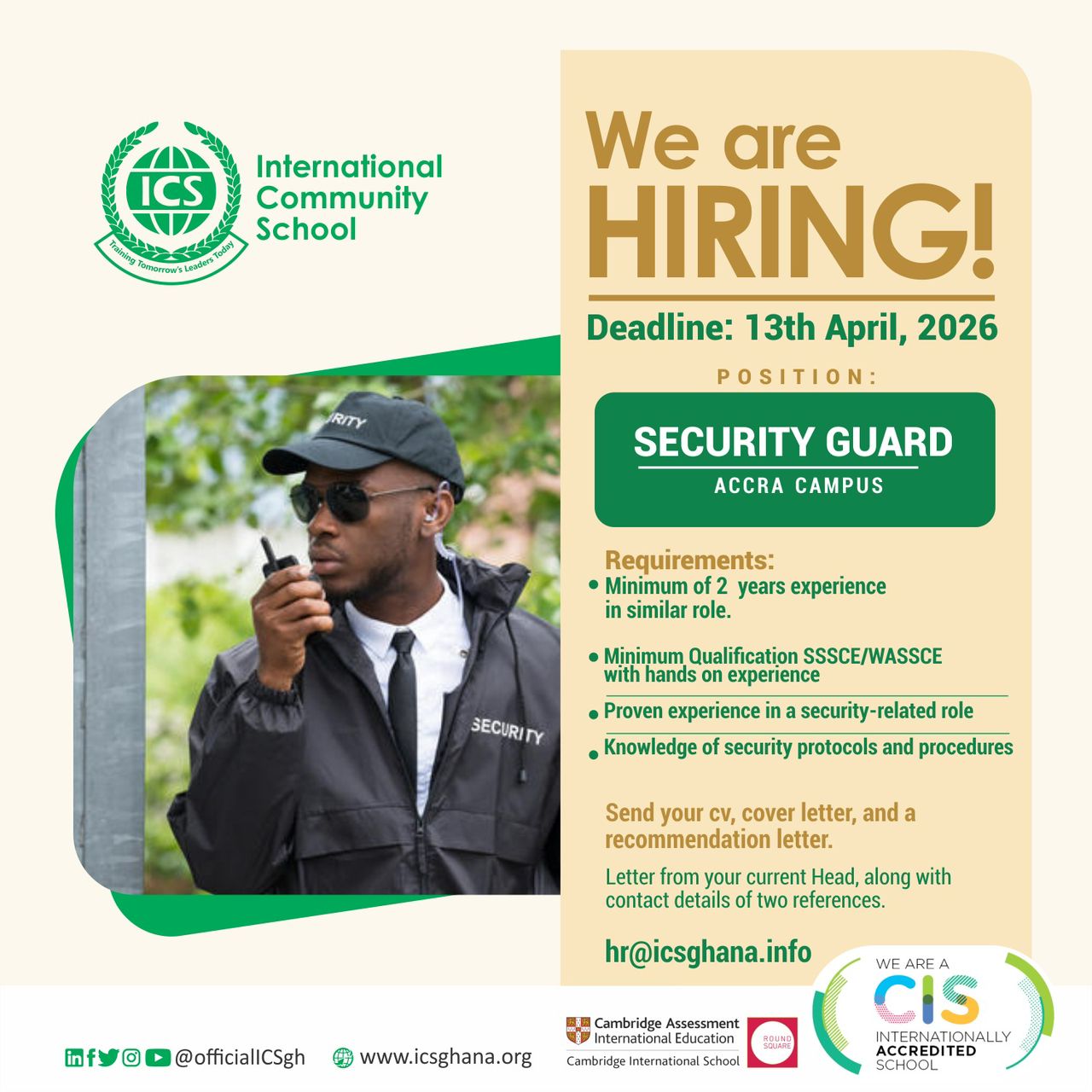 We are seeking professional and dedicated Security Officers to join our tight-knit and highly regarded team at our Accra Campus.