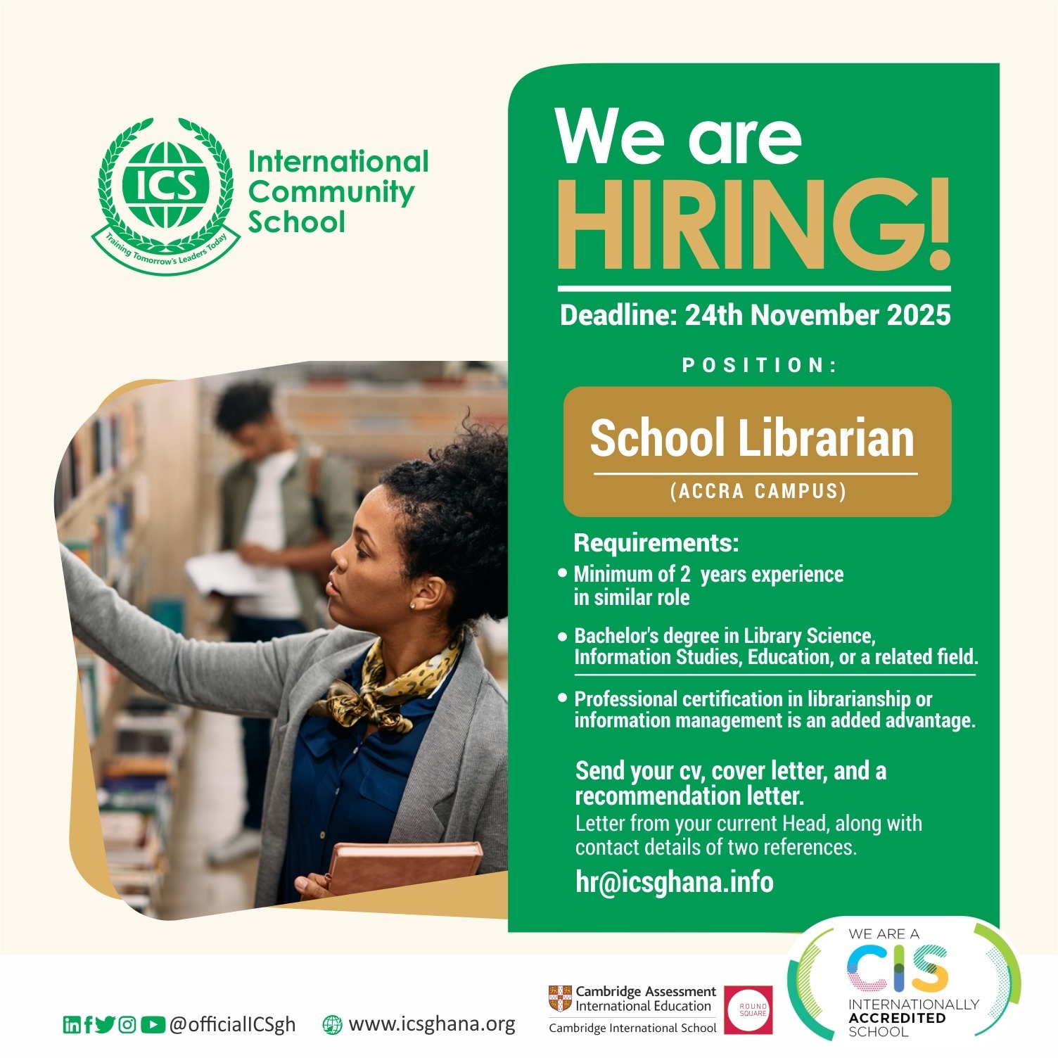 We are seeking a passionate and dedicated Primary School Librarian to join our vibrant learning community at our Accra Campus. If you have a love for books, enjoy inspiring young readers, and are skilled at creating engaging literacy experiences, this is the perfect opportunity for you!