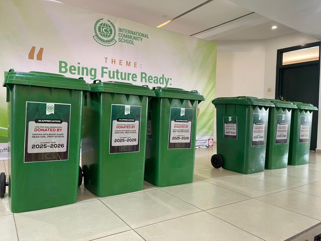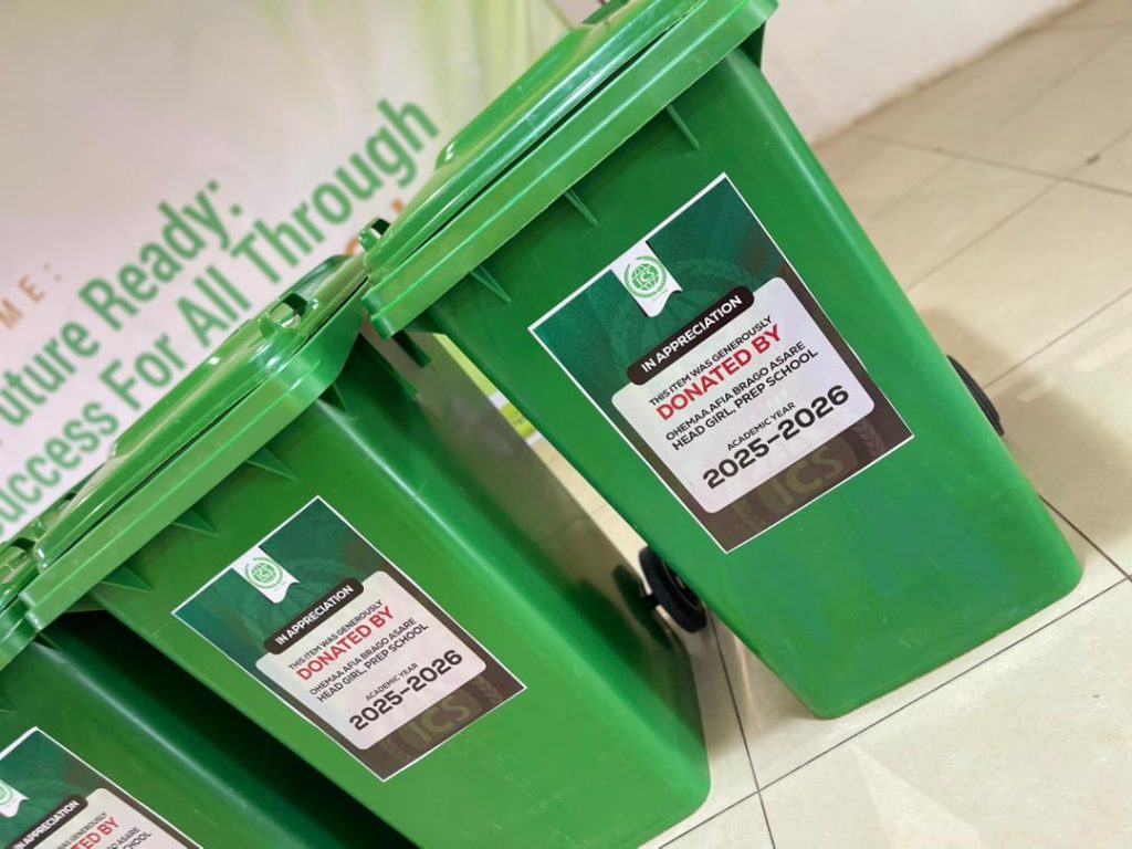 The Prep School Head Girl Prefect-elect for the 2025/2026 academic year, Ohemaa Afia Brago Asare, has fulfilled her pledge to support environmental cleanliness within the school by donating six 360-liter dustbins.